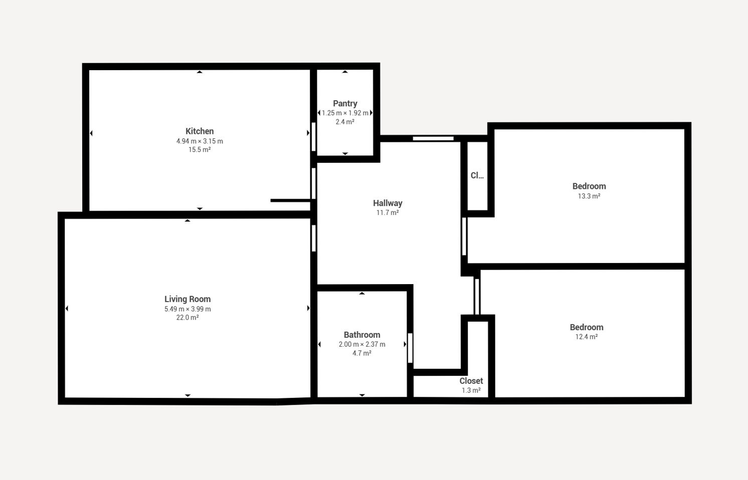 - Two bedrooms with built-in closets and a shared balcony, providing light and comfort.