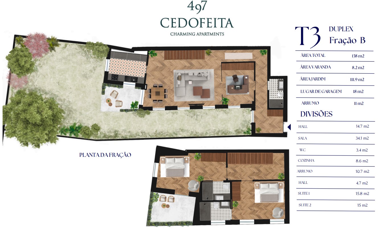📍 FRAÇÃO B – T3 Duplex com Jardim Privativo